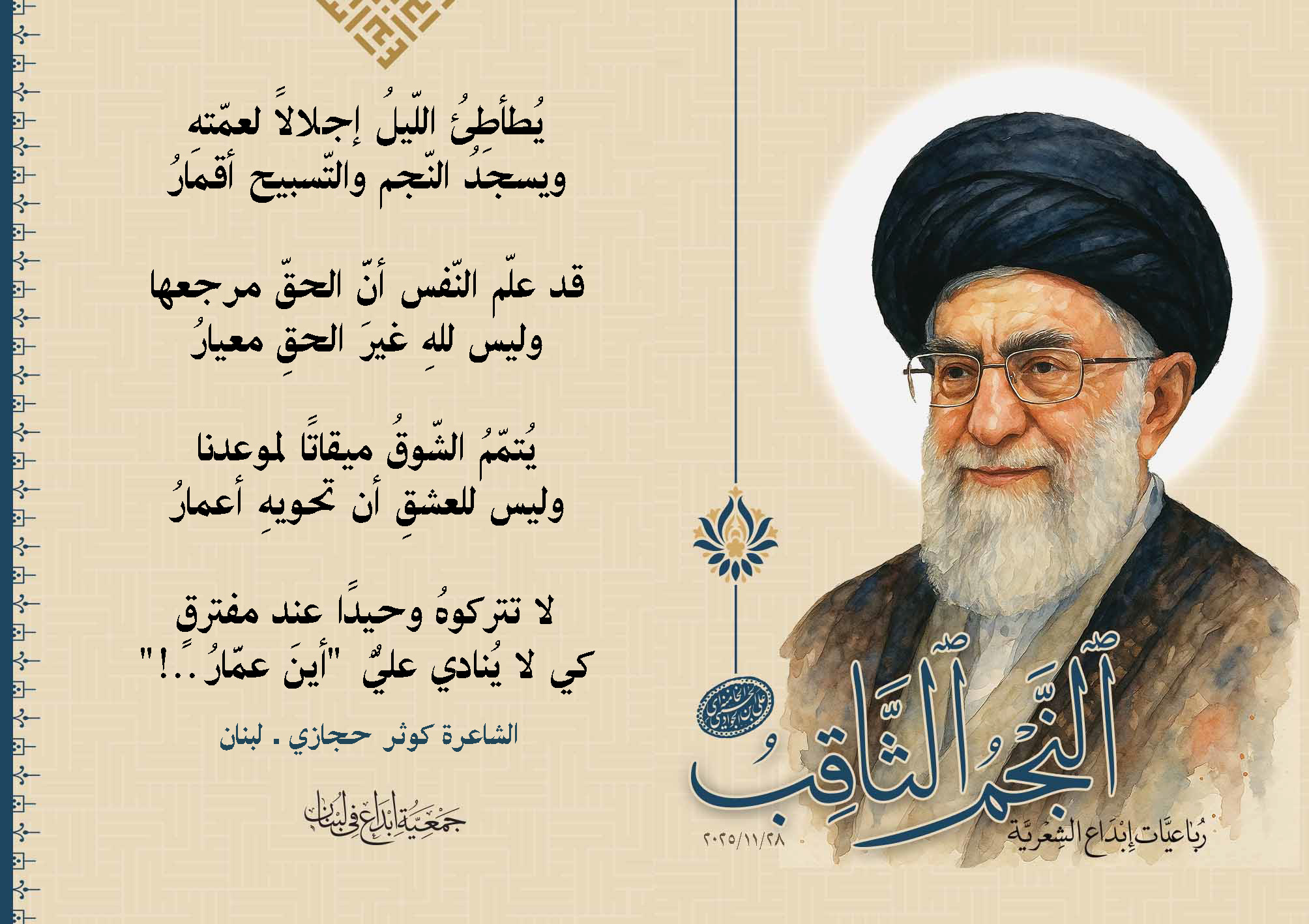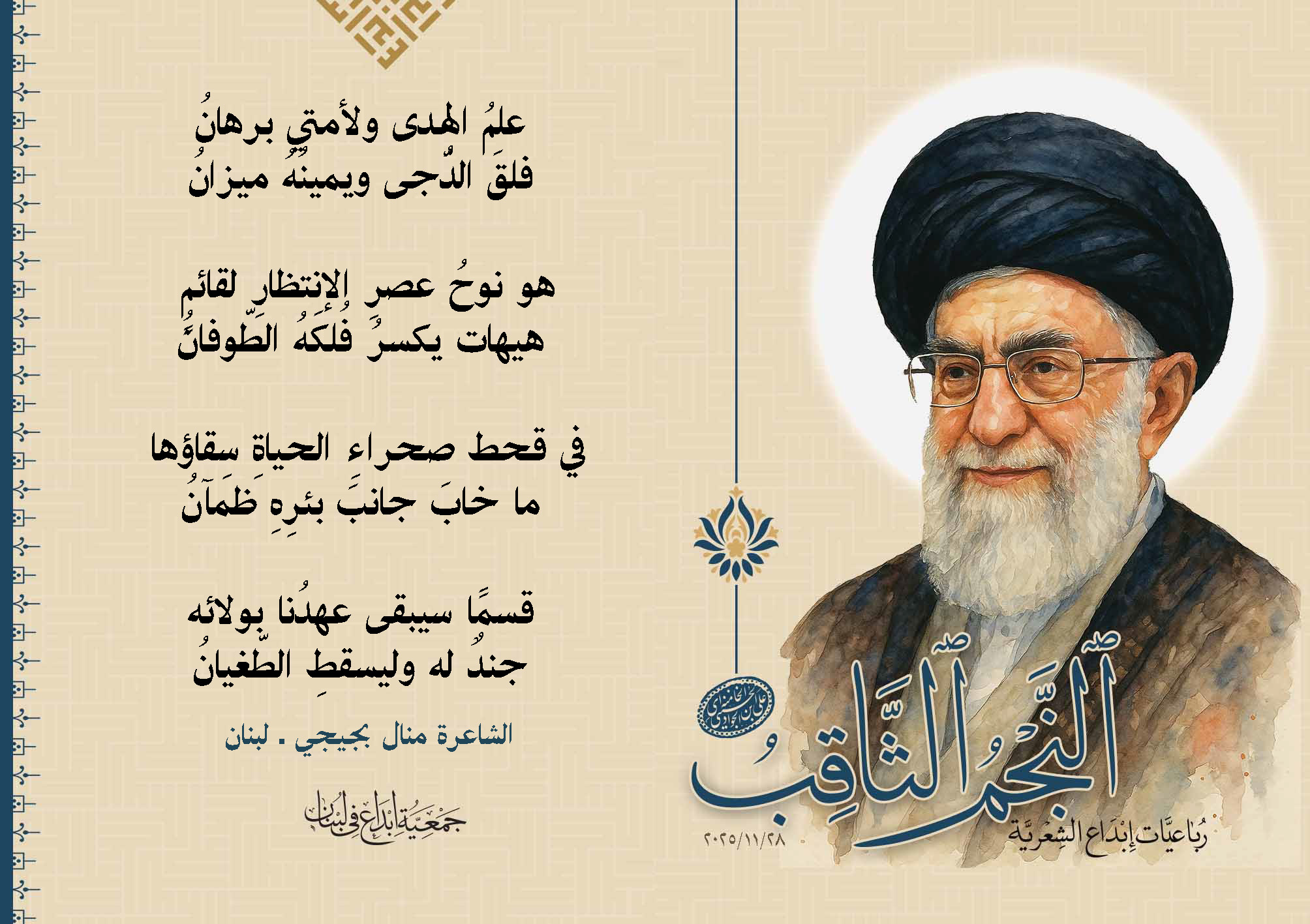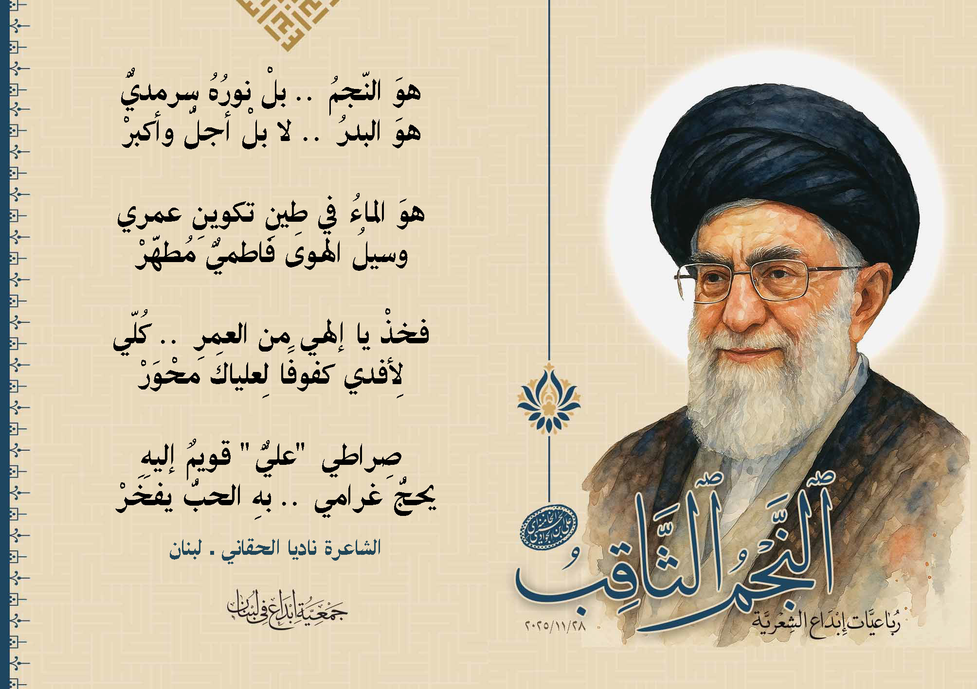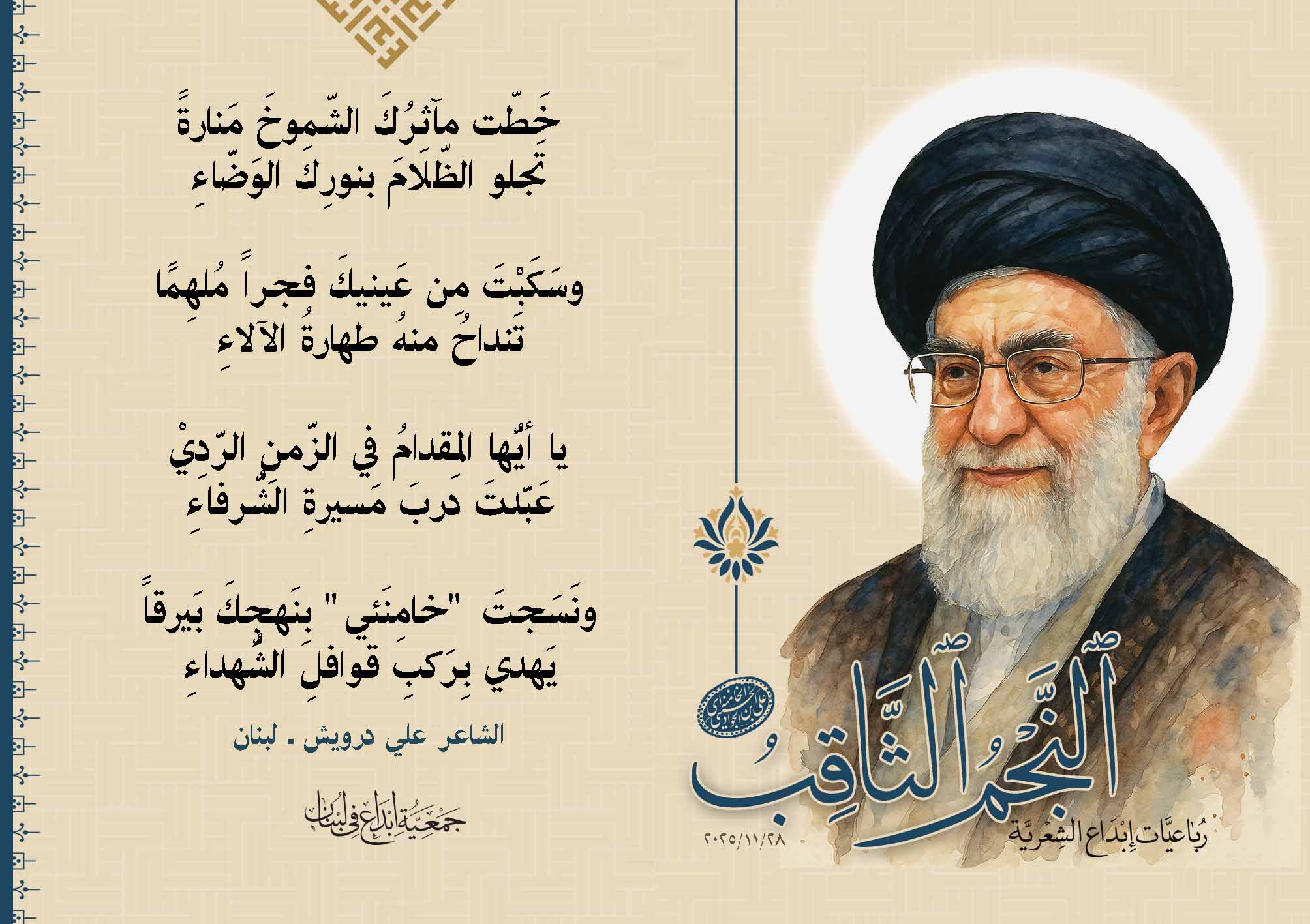 رباعيات #النجم_الثاقب الشعرية تحية #إبداع لولينا القائد الإمام #الخامنه_إي "دام ظله الوارف"28/11/2025