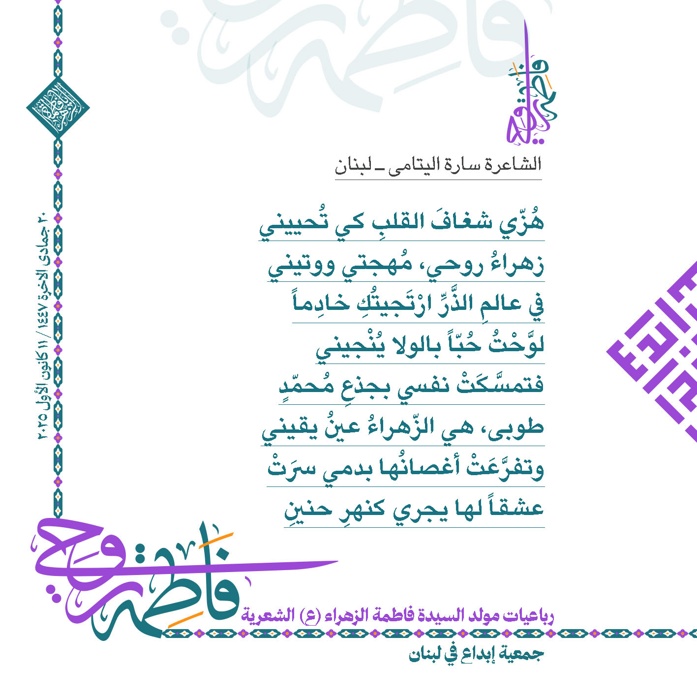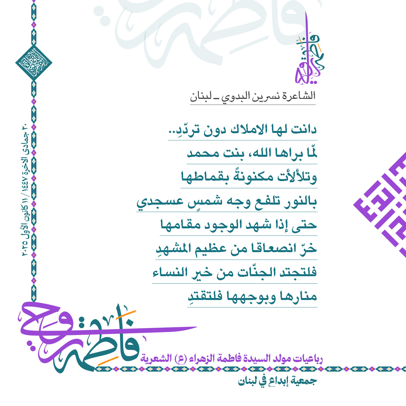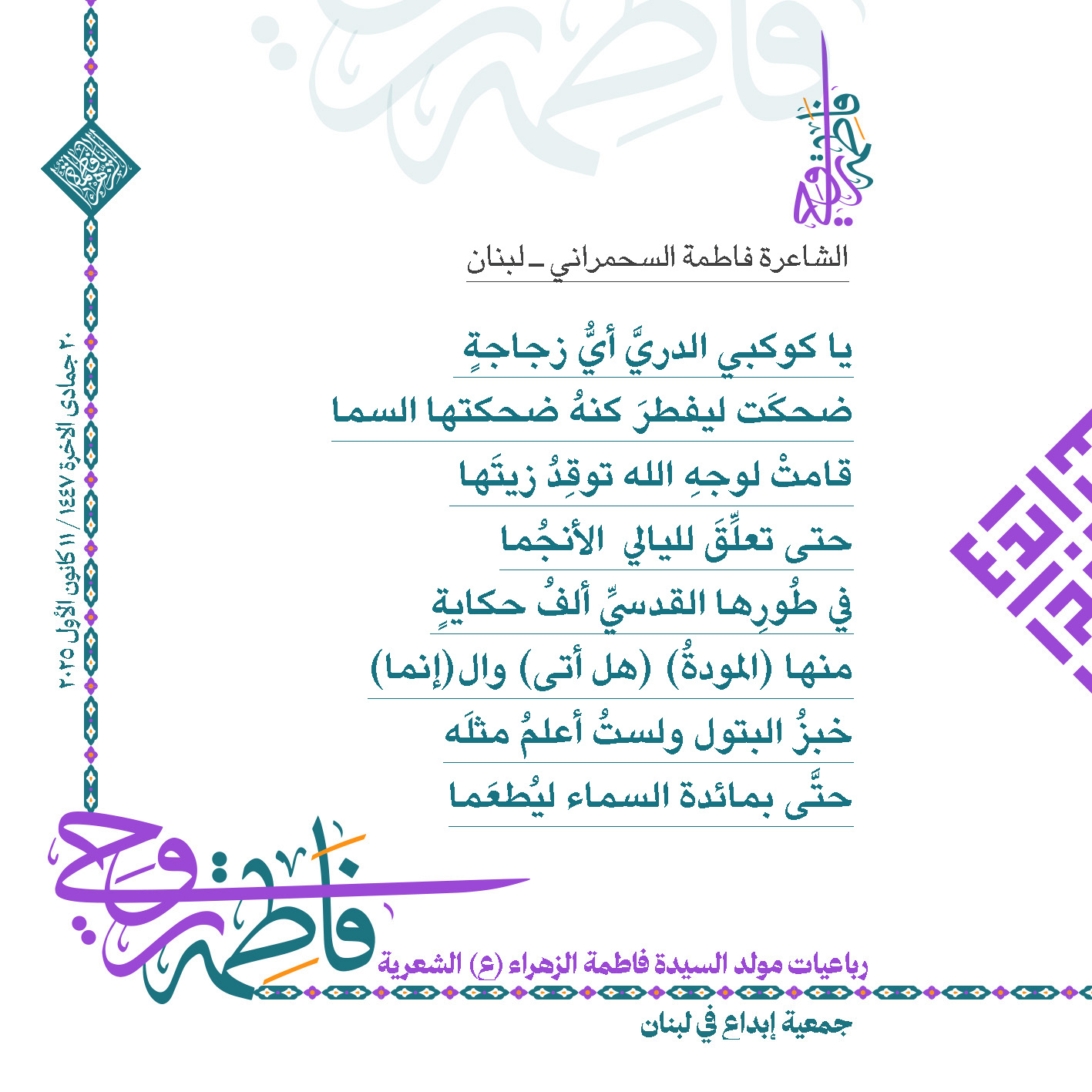 #فاطمة_روحي رباعيات #إبداع الشعرية بذكرى مولد السيدة #فاطمة_الزهراء (ع)