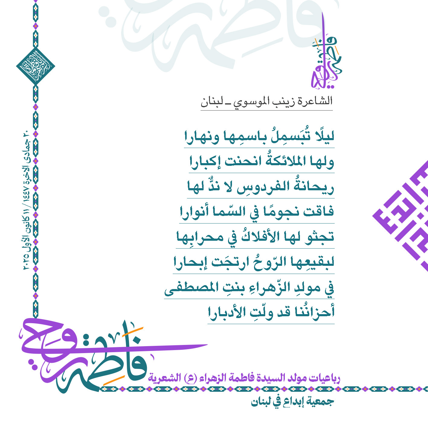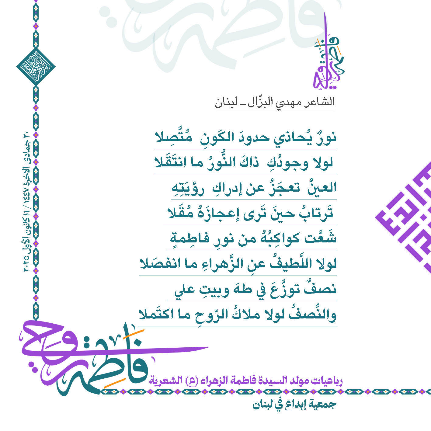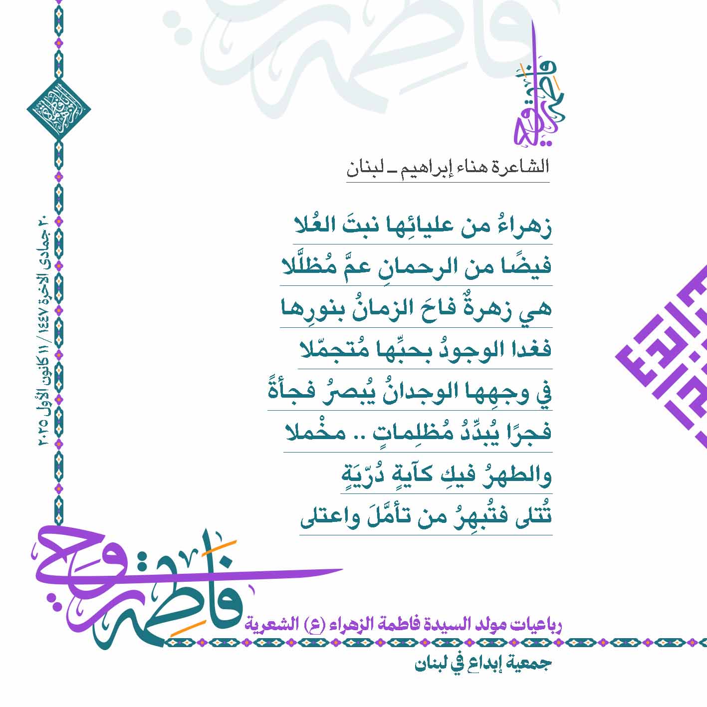 #فاطمة_روحي رباعيات #إبداع الشعرية بذكرى مولد السيدة #فاطمة_الزهراء (ع)