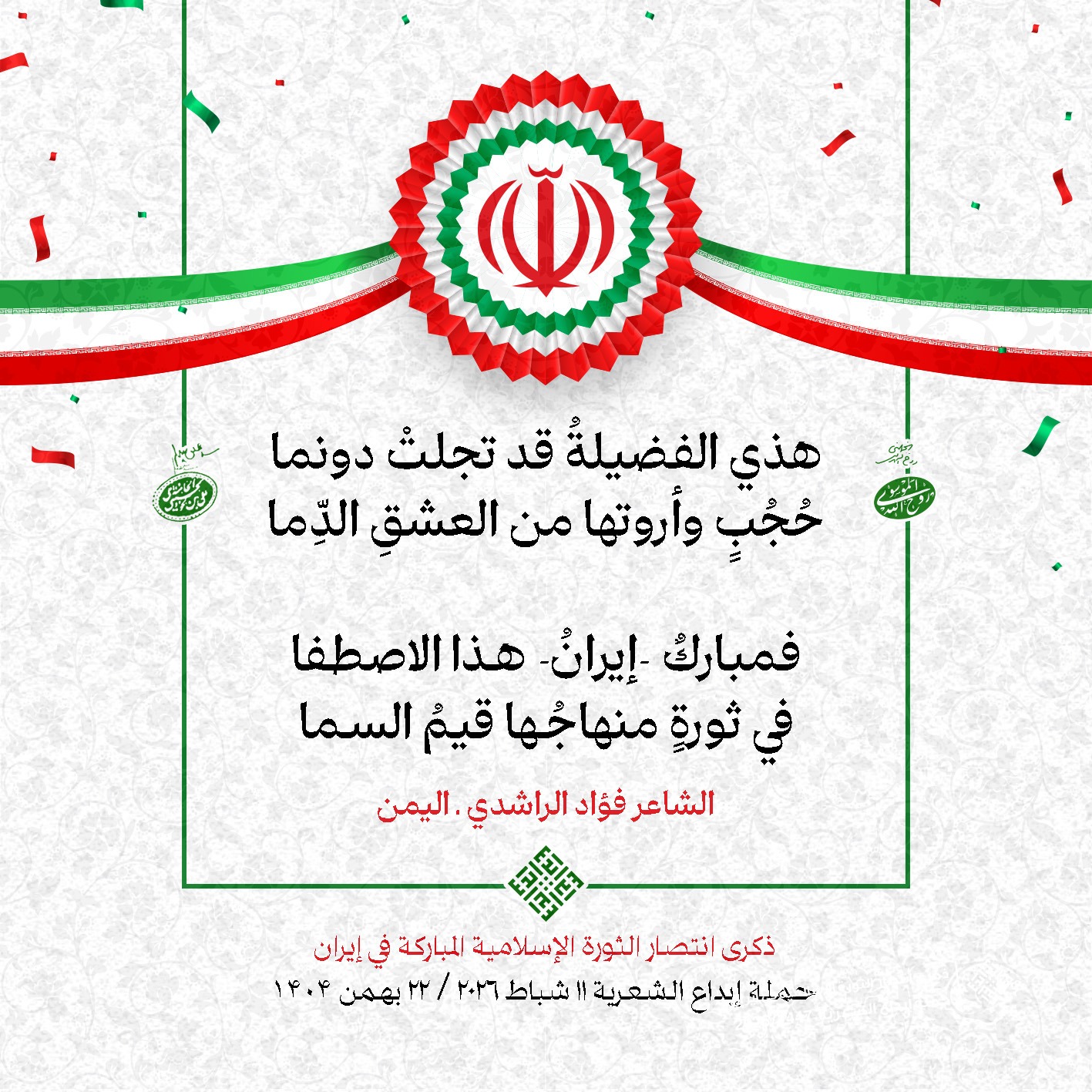 #تبريكات_انتصار_الثورة لمناسبة ذكرى انتصار الثورة الإسلامية في #إيران أطلقت جمعية إبداع في #لبنان حملة شعرية عشية الإنتصار المبارك . وقد شارك في الحملة شعراء وشاعرات من لبنان واليمن والعراق : 1. الشاعر السيد الحتاني ـ لبنان 2. الشاعر الشيخ حسين فقيه ـ لبنان 3. الشاعر الشيخ رضوان الزبيدي ـ العراق 4. الشاعر أحمد غالب سرحان ـ لبنان 5. الشاعر حيدر حيال ـ العراق 6. الشاعر راضي الفريجي ـ العراق 7. الشاعر علي أسامة الحاج دياب ـ لبنان 8. الشاعر علي درويش ـ لبنان 9. الشاعر فؤاد الراشدي ـ اليمن 10. الشاعر محمود شور ـ لبنان 11. الشاعر معن عبد الإله محسن ـ العراق 12. الشاعر مهدي البزّال ـ لبنان 13. الشاعرة أمل سرور ـ لبنان 14. الشاعرة أمل طنانة ـ لبنان 15. الشاعرة حوراء جشي ـ لبنان 16. الشاعرة حوراء مرتضى ـ لبنان 17. الشاعرة زهراء درويش ـ لبنان 18. الشاعرة زهراء مرتضى ـ لبنان 19. الشاعرة زينب الموسوي ـ لبنان 20. الشاعرة سارة اليتامى ـ لبنان 21. الشاعرة سكينة سويدان ـ لبنان 22. الشاعرة عزيزة جميل ـ لبنان 23. الشاعرة غدير نعيم ـ لبنان 24. الشاعرة فاطمة السحمراني ـ لبنان 25. الشاعرة فاطمة عبدو أبو ريّا ـ لبنان 26. الشاعرة كوثر حجازي ـ لبنان 27. الشاعرة مريم عبيد ـ لبنان 28. الشاعرة مريم عصمان ـ لبنان 29. الشاعرة ناديا الحقاني ـ لبنان 30. الشاعرة نبال رعد ـ لبنان #إبداع 11 شباط 2026 #حملة_شعرية #إيران .jpeg)