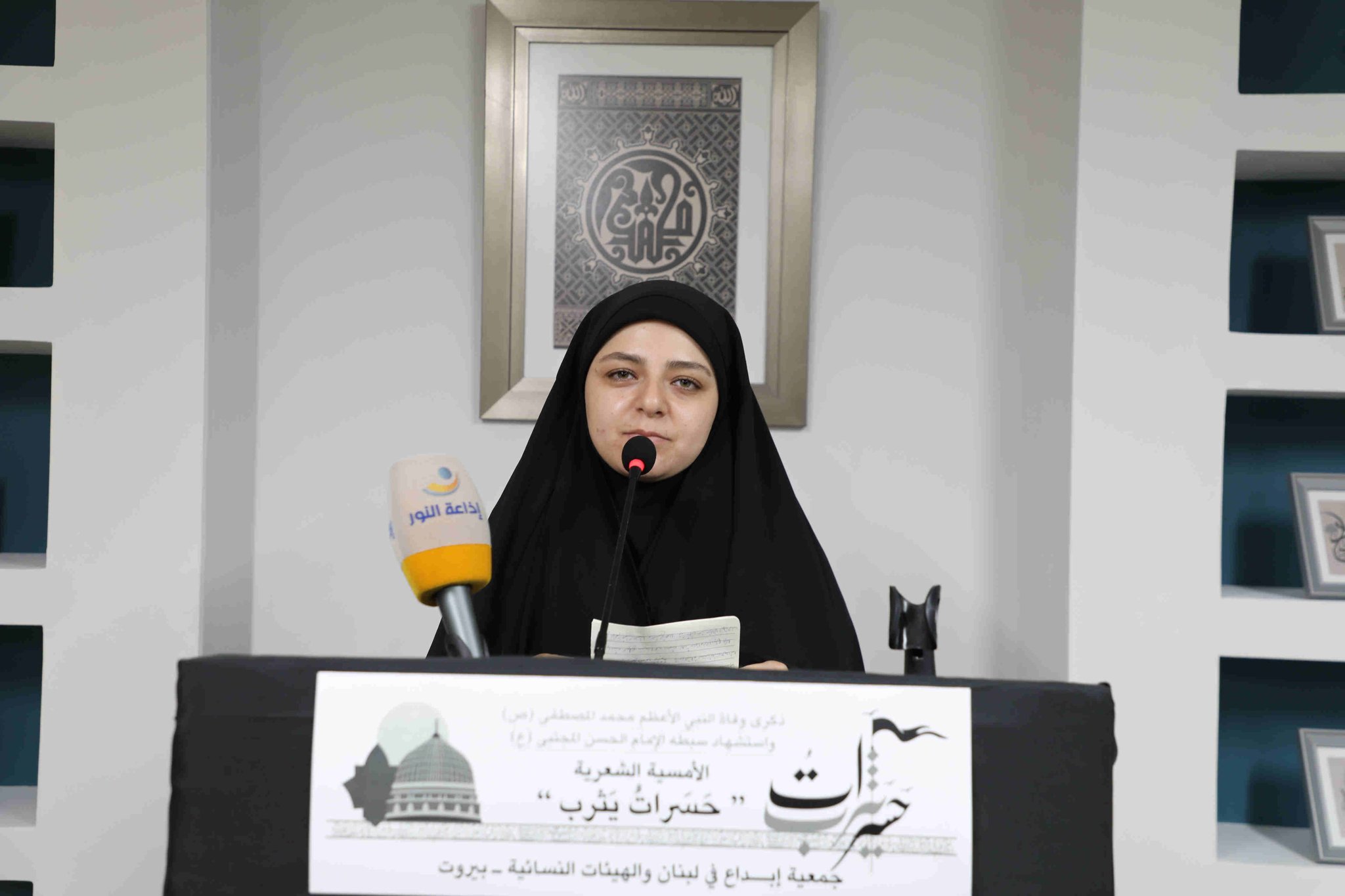 اقامت جمعية ابداع في لبنان بالتعاون مع الهيئات النسائبة في بيروت امسية شعرية ب عنوان حسرات يثرب في ذكر وفاة الرسول الاكرم (ص) واستشهاد الإمام الحسن (ع) تصوير زينب حسيني 22/8/2025